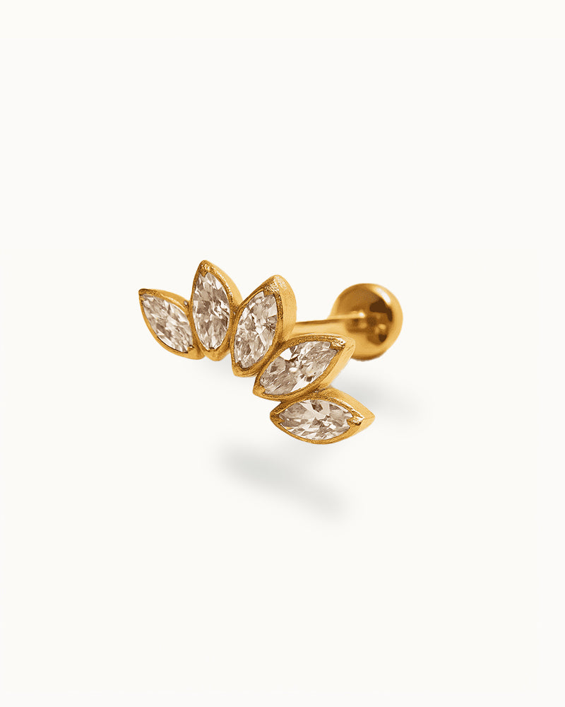 Five marquise-cut stones form a flowing, leaf-like cluster that curls subtly around the ear. The organic design exudes softness and refinement, with a modern finish that pairs perfectly with both minimal and statement ear stacks.