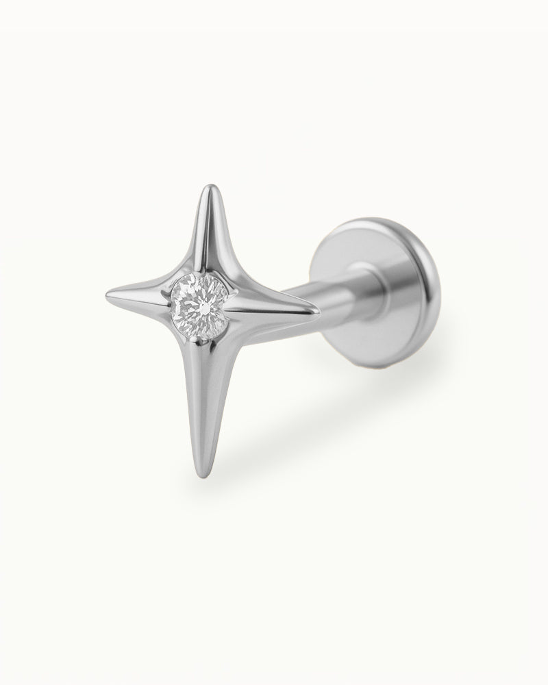 A subtle star with a powerful look – this titanium piercing combines minimalist design with a playful, cosmic element. The sleekly shaped star radiates from the center, where a clear stone sparkles like the heart of a shooting star.