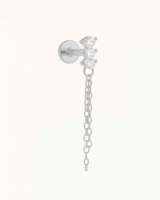 Piercing met Drie Steentjes en Elegante Chain Drop - Thora