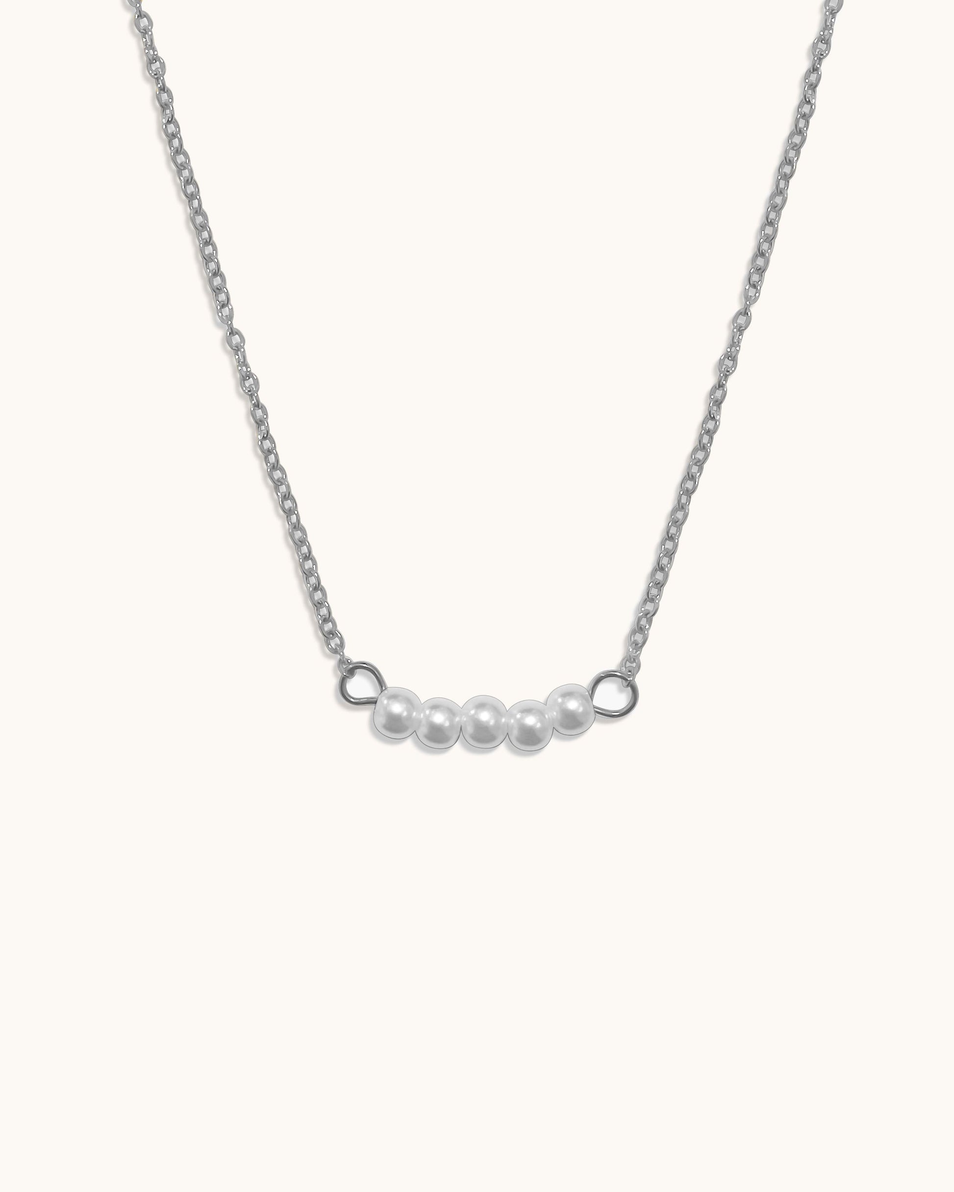 Een verfijnde ketting met kleine parels in het midden, die subtiele elegantie toevoegt aan elke outfit. Perfect voor een chique, tijdloze uitstraling!