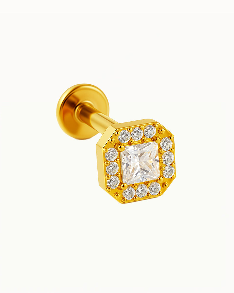 Titanium Blok Piercing met Stralende Steentjes - Joella